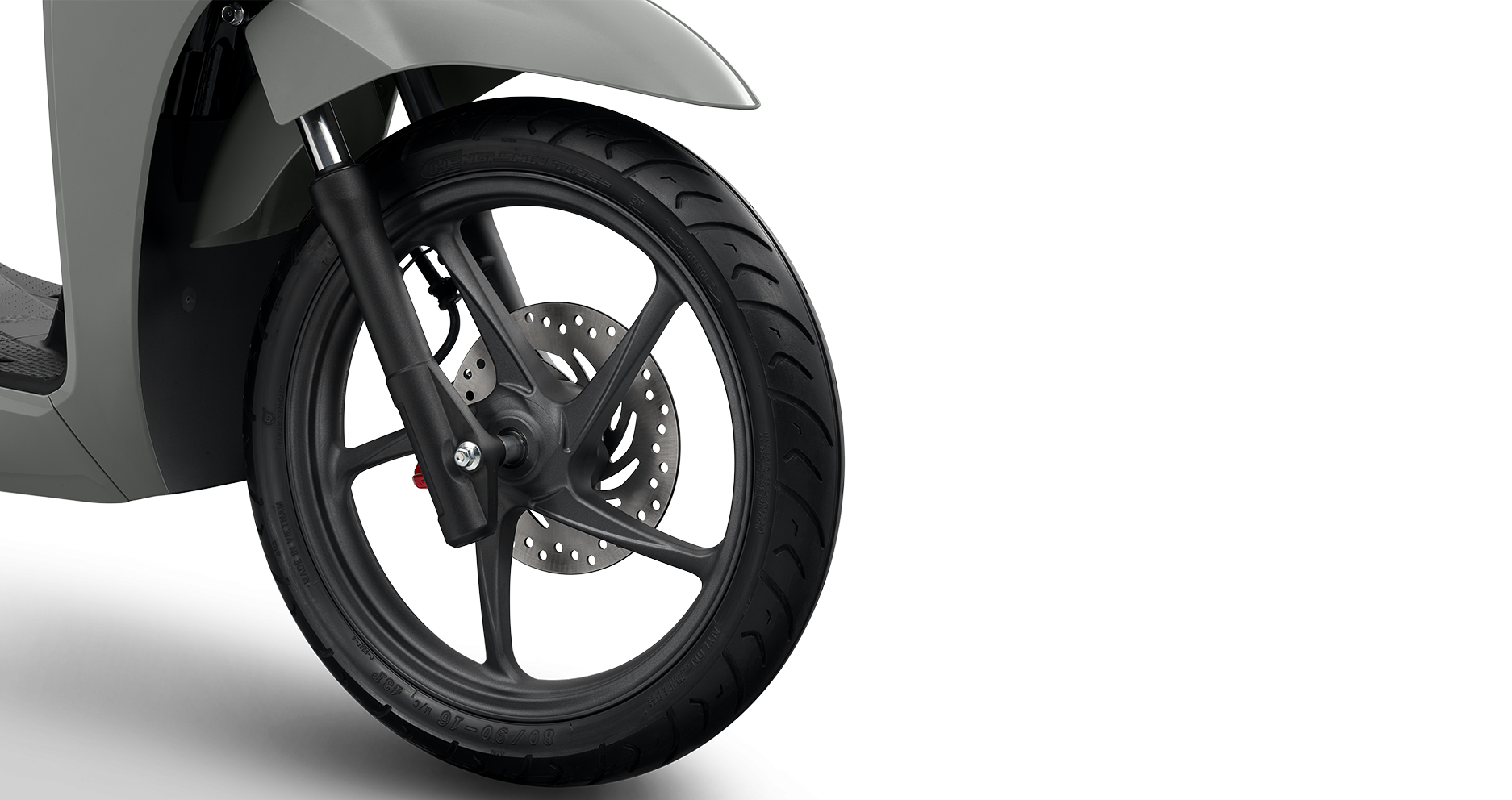 Bánh xe trước có kích thước lớn 16 inch, đem đến tư thế lái xe cao, thẳng cùng tầm nhìn thoáng rộng.
